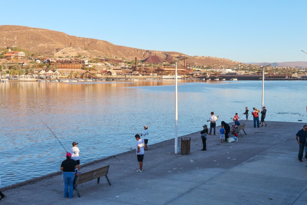 Participantes del torneo en la zona conocida como la escollera norte, del puerto de Santa Rosalía.