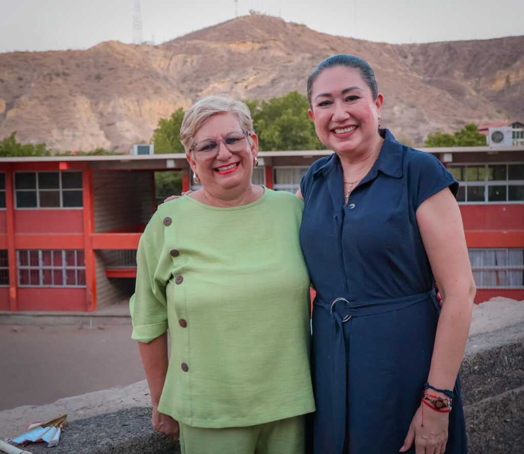 Alcaldesa Edith Aguilar, acompañada por Martina Navarro, vecina y beneficiada de la colonia.