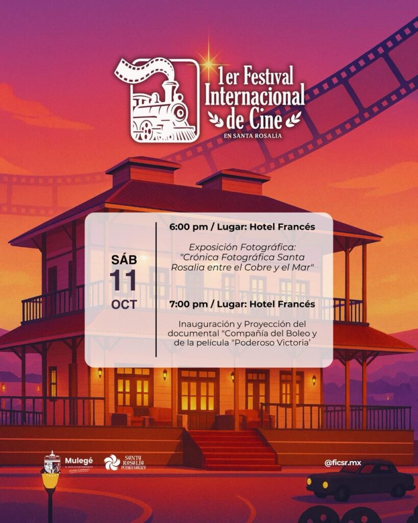 El sábado 11 de octubre, será la gran inauguración de este Festival en las instalaciones del emblemático Hotel Francés, ubicado en Calle Jean M. Cousteau #15, con la presentación de la exposición “Crónica Fotográfica: Santa Rosalía entre el Cobre y el Mar 1885–1954” a las 6:00 P.M.